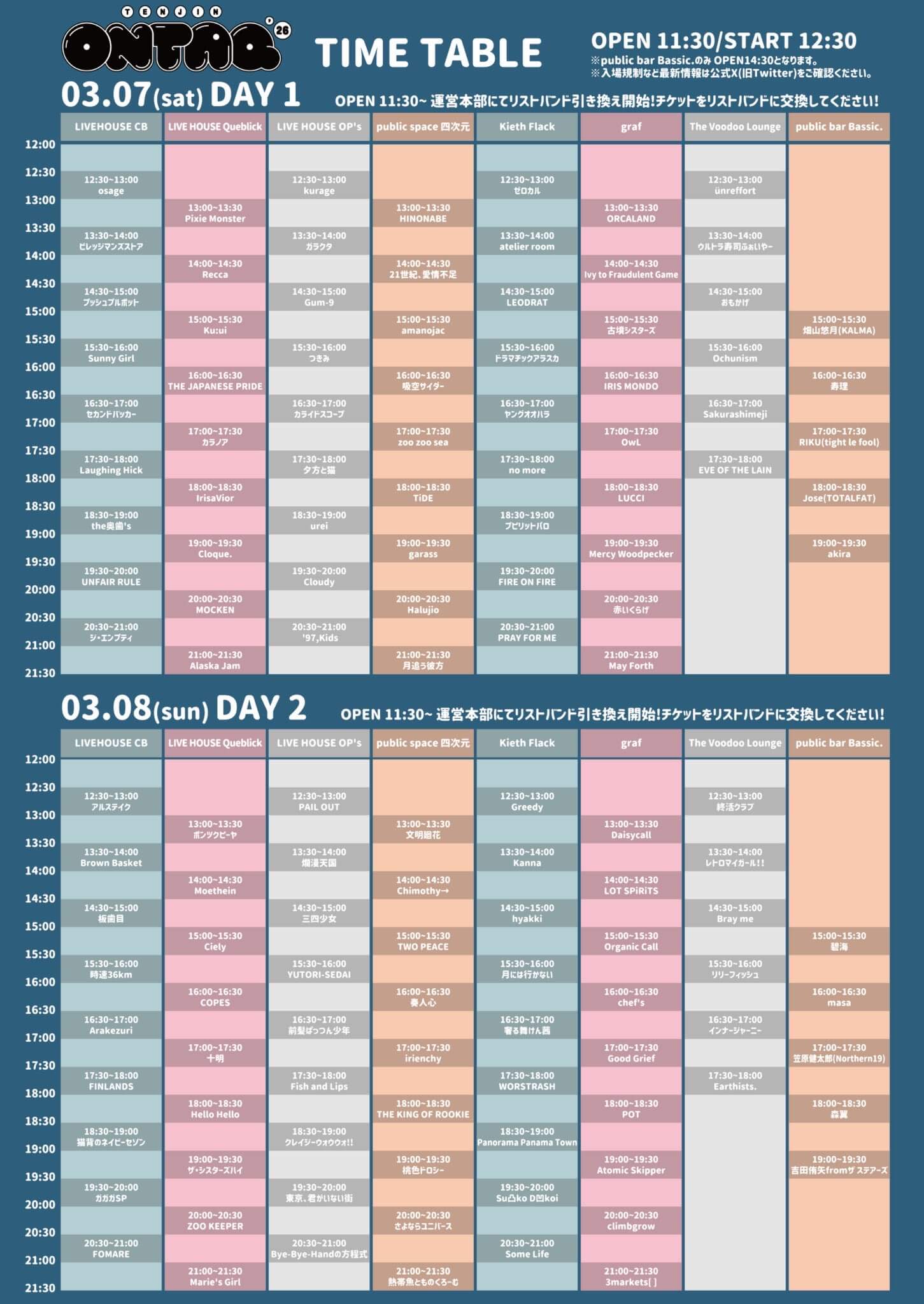 2日通し券:11,000円(2Drink込み) 1日券:6,000円(1Drink込み)