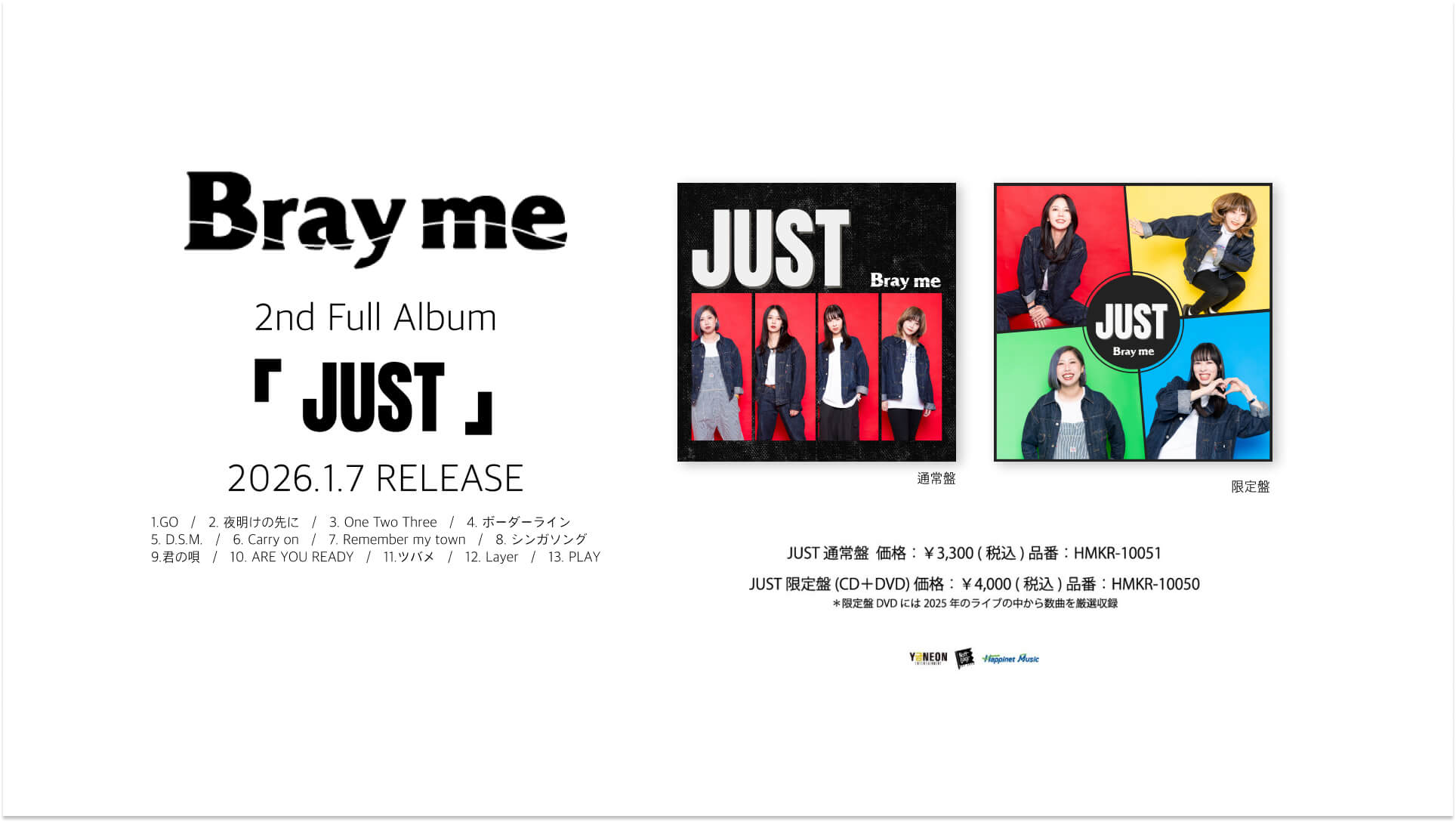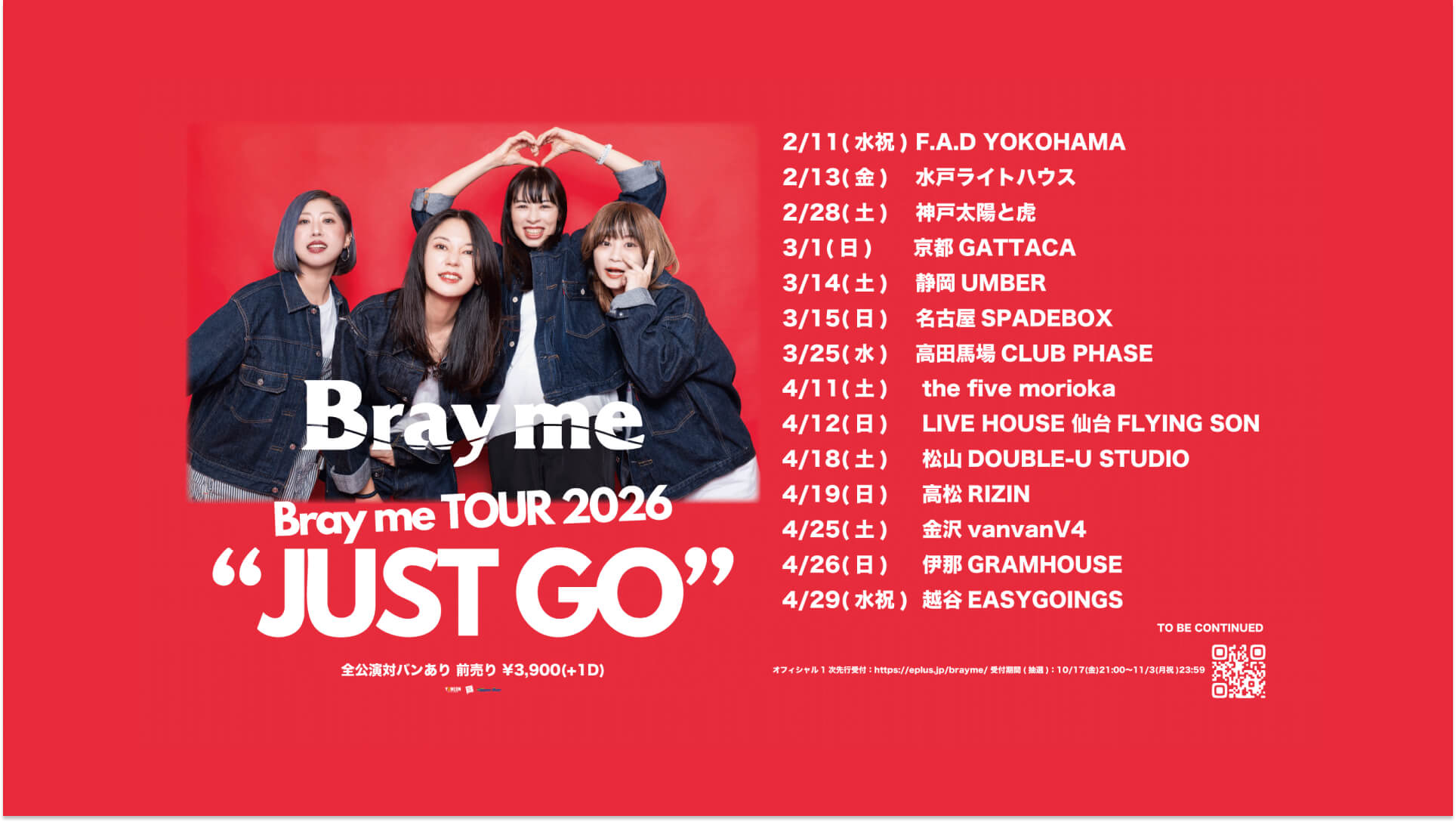 Bray me TOUR 2026 “JUST GO” 前半戦 12/6 10:00〜一般発売開始!!