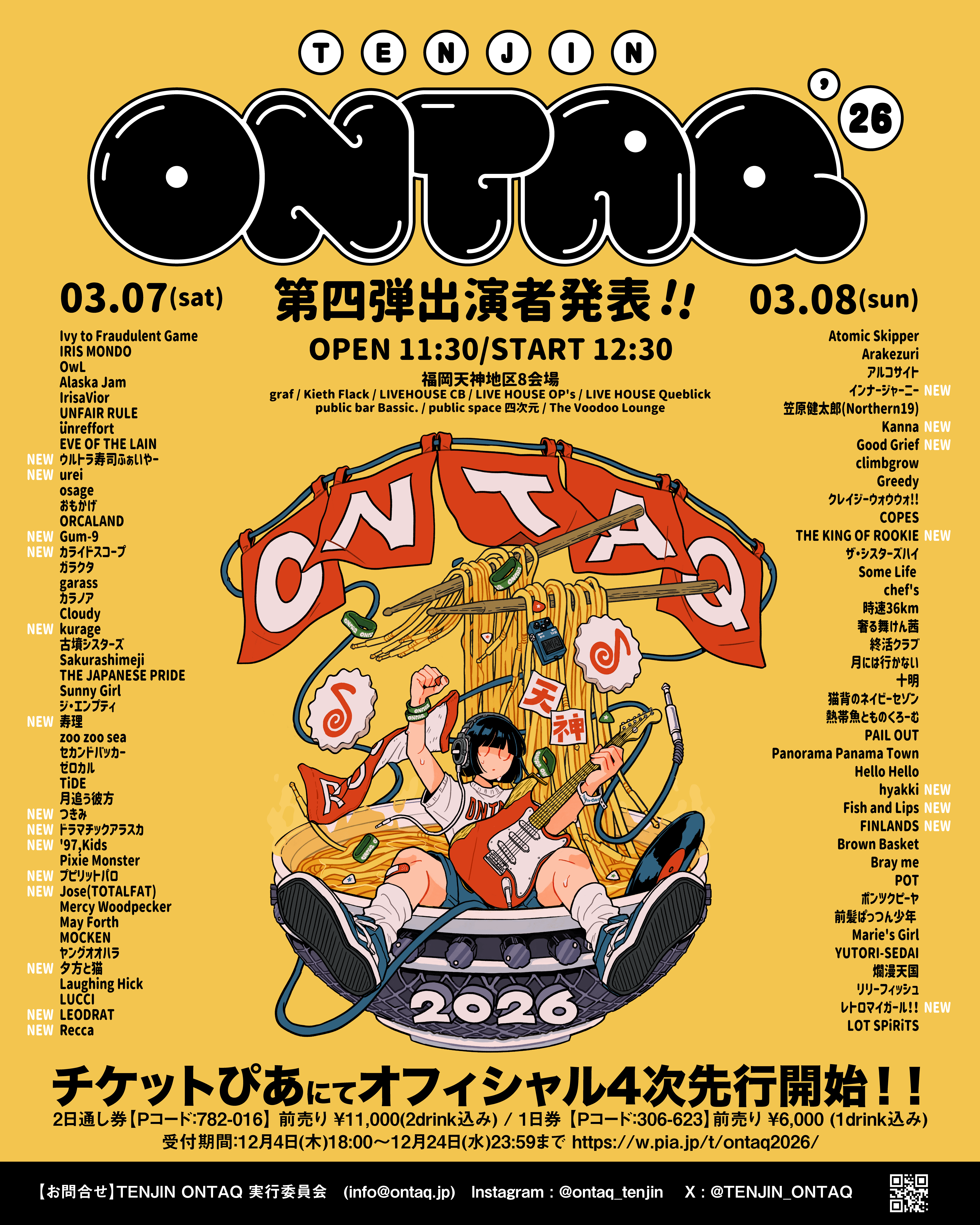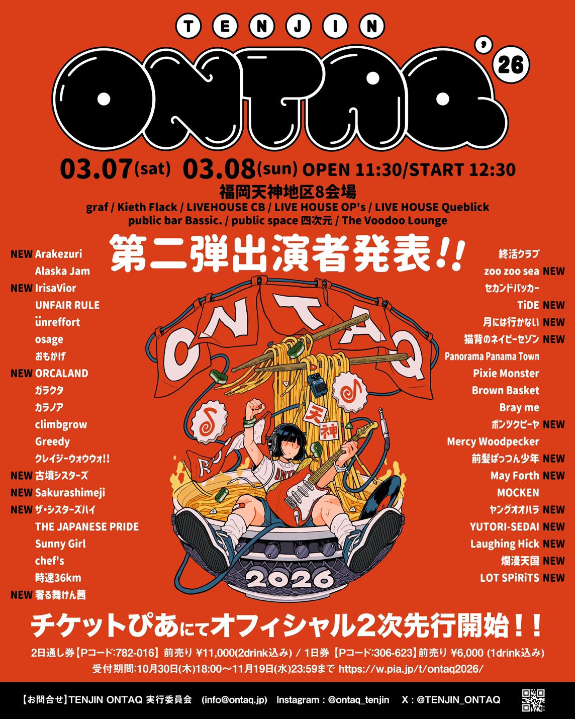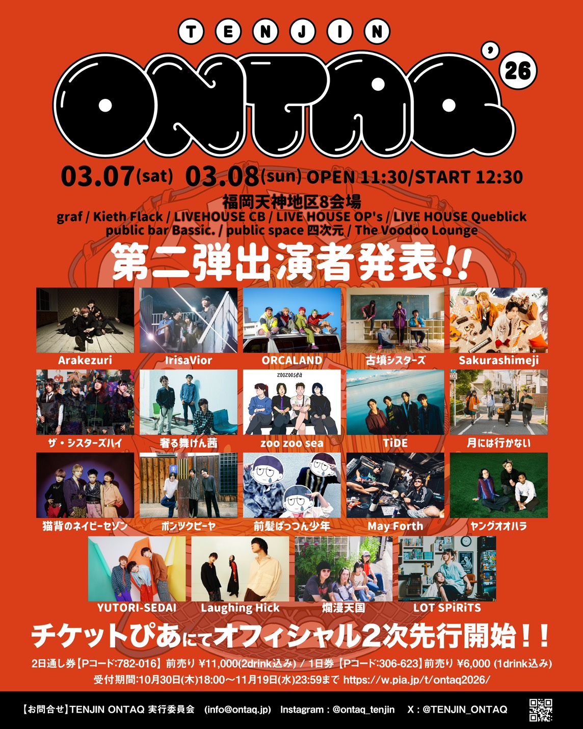 2日通し券:11,000円(2Drink込み) 1日券:6,000円(1Drink込み)